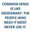 COMMON SENSE IS LIKE DEODORANT. THE PEOPLE WHO NEED IT MOST NEVER USE IT.
