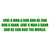 GIVE A MAN A GUN AND HE CAN ROB A BANK. GIVE A MAN A BANK AND HE CAN ROB THE WORLD.