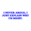 I NEVER ARGUE, I JUST EXPLAIN WHY I'M RIGHT.
