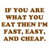 IF YOU ARE WHAT YOU EAT THEN I'M FAST, EASY, AND CHEAP.