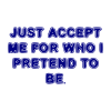 JUST ACCEPT ME FOR WHO I PRETEND TO BE.