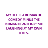 MY LIFE IS A ROMANTIC COMEDY MINUS THE ROMANCE AND JUST ME LAUGHING AT MY OWN JOKES.