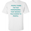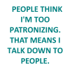PEOPLE THINK I'M TOO PATRONIZING. THAT MEANS I TALK DOWN TO PEOPLE.
