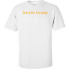 The joke on this shirt is that the wearer is decidedly not sorry for partying.