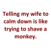 Telling my wife to calm down is like trying to shave a monkey.