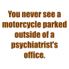 You never see a motorcycle parked outside of a psychiatrist's office.